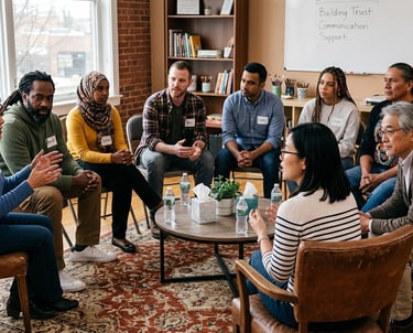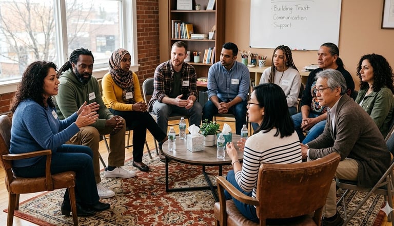 Facilitated sessions that provide a supportive environment to build skills. Specialized groups include Substance Use Disorder (SUD) recovery, Anger Management, and Social Skills for students.